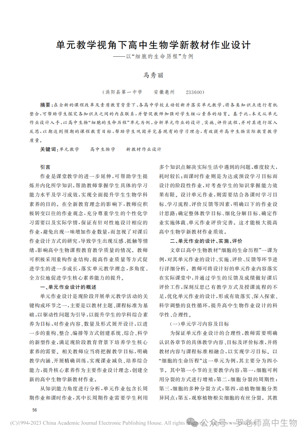 【文献阅读】单元教学视角下高中生物学新...—以“细胞的生命历程”为例