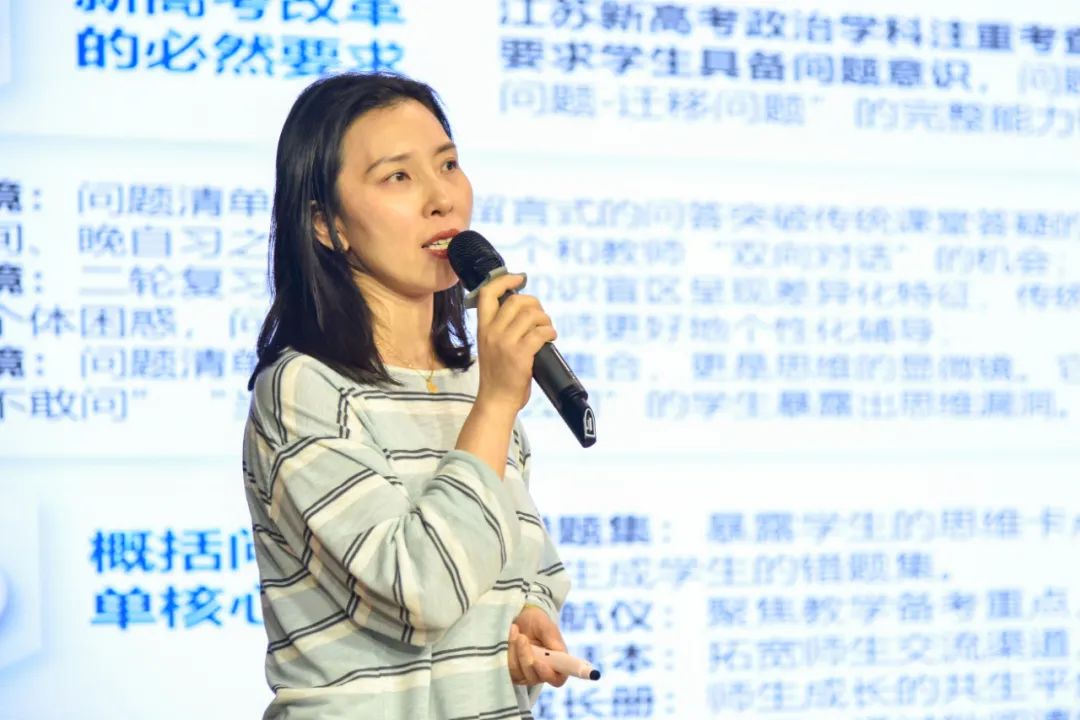 副校长吴敏随后进行主题点评。他高度赞扬了四位教师的创新探索与实践成果,指出学生“问题清单”不仅是学生进行自我诊断、实现自我提升的有力工具,更是搭建师生深度沟通交流的重要桥梁。吴校长着重强调,全体教师应在日常教学实践中持续优化“问题清单”的实施方式,积极鼓励学生提出高质量、有深度的问题,以耐心和细心认真批阅并解答问题,深入探寻问题背后隐藏的学生学习需求和教学价值,真正让“问题清单”成为助力学生学习进步的强大助推器,以及指引教师教学方向的精准指南针。